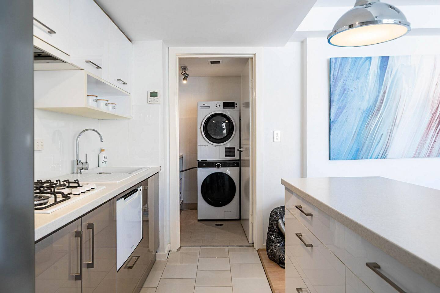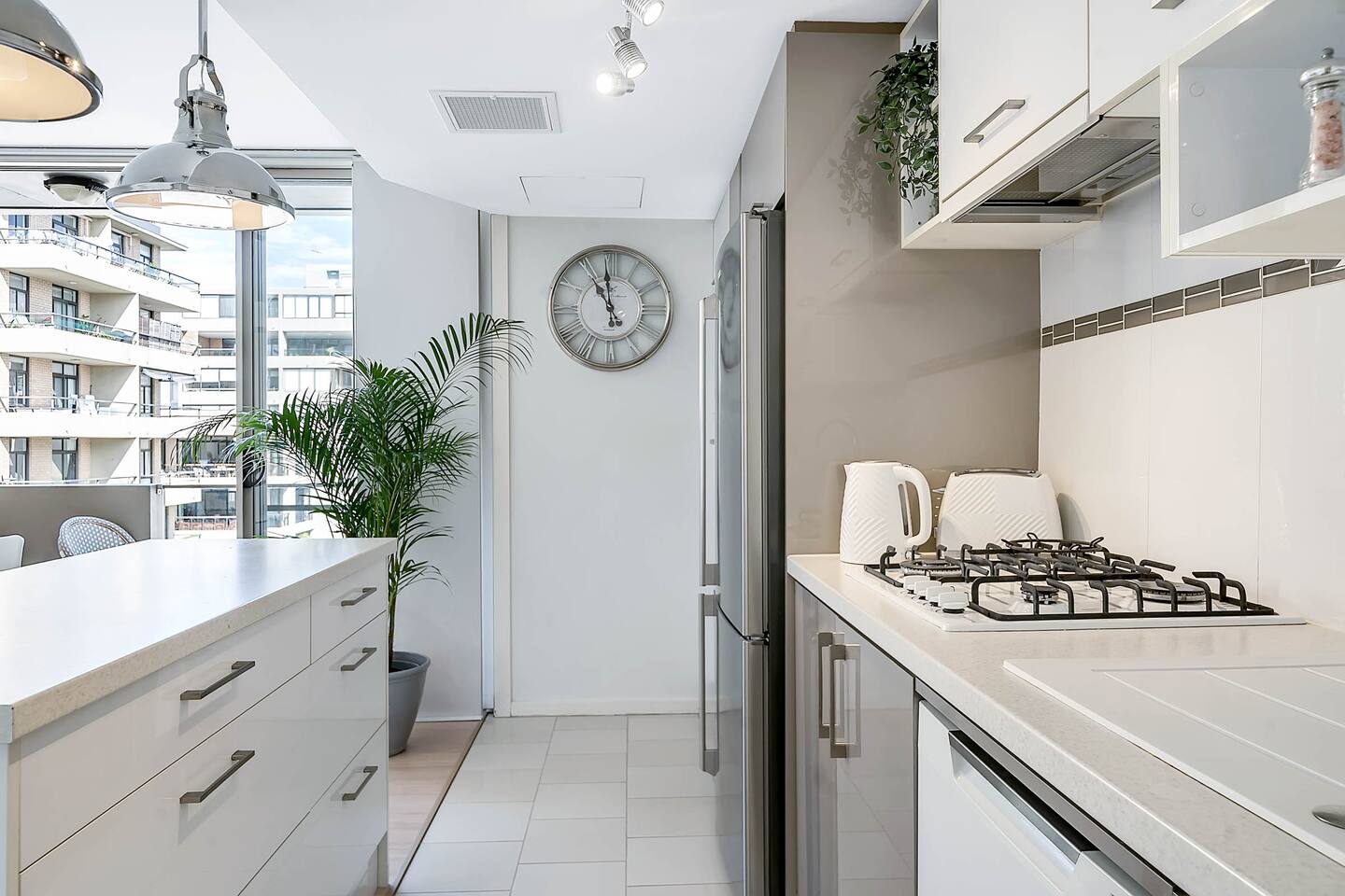 - Schlafzimmer mit Queensize-Bett und Kleiderschrank - Zwei Fernseher (einer im Schlafzimmer, einer im Wohnzimmer) - Badezimmer en suite - Voll ausgestattete Küche mit Gasherd, Backofen, Geschirrspüler, Mikrowelle usw. - Separater Waschraum mit Waschmaschine und Kondensationstrockner - Offener Wohn-, Ess- und Küchenbereich mit kleinem Balkon und viel Licht - Sicherheitsgebäude mit Parkplatz unter dem Haus und Aufzug zu allen Etagen Das Schlafzimmer ist nicht für ein Babybett geeignet, daher wird diese Unterkunft nicht für Babys/Kleinkinder empfohlen.