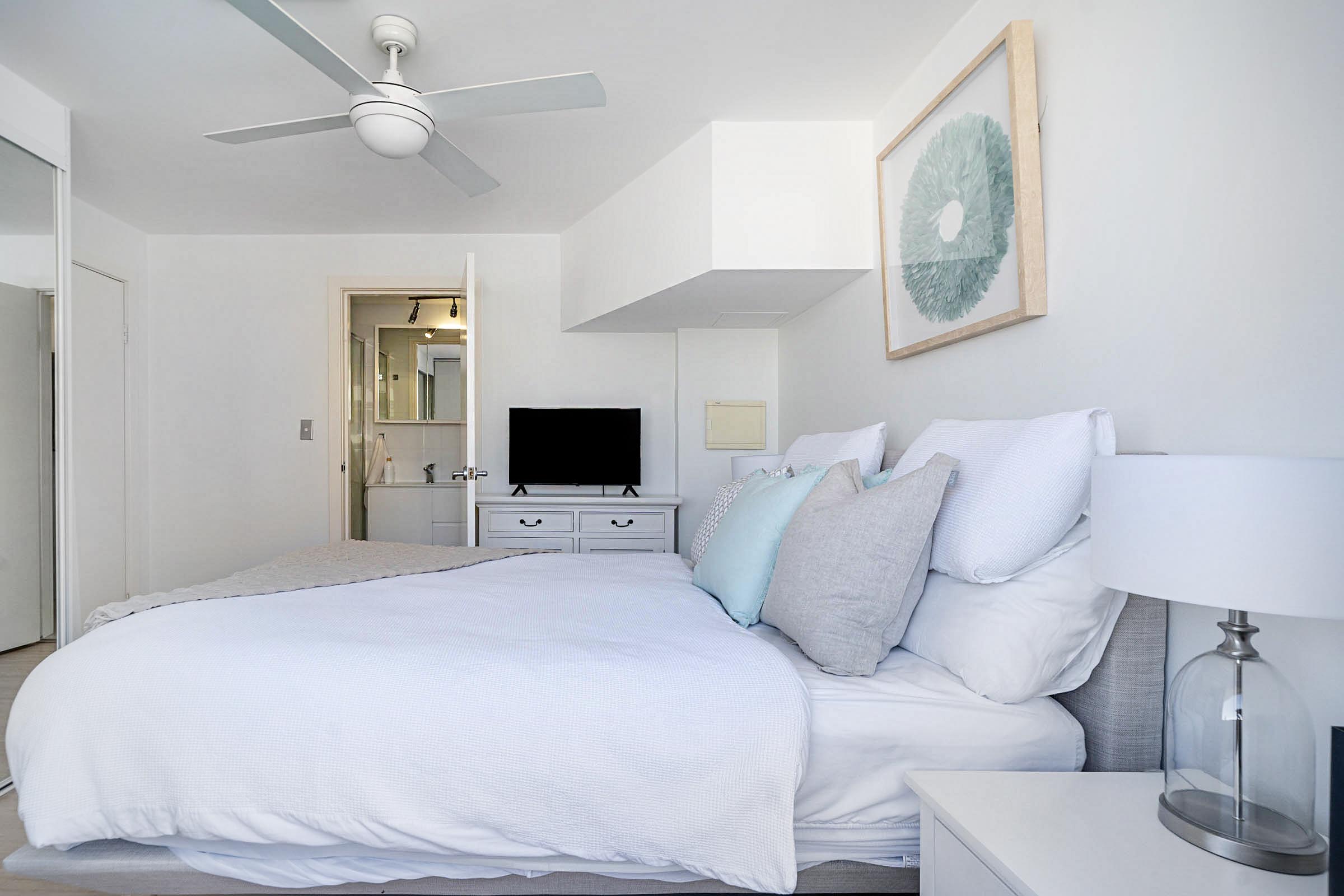 There is not enough room for a cot in the bedroom so this apartment is not recommended for children or infants. Maximum height for the parking area is 2.07m. The ensuite is compact.