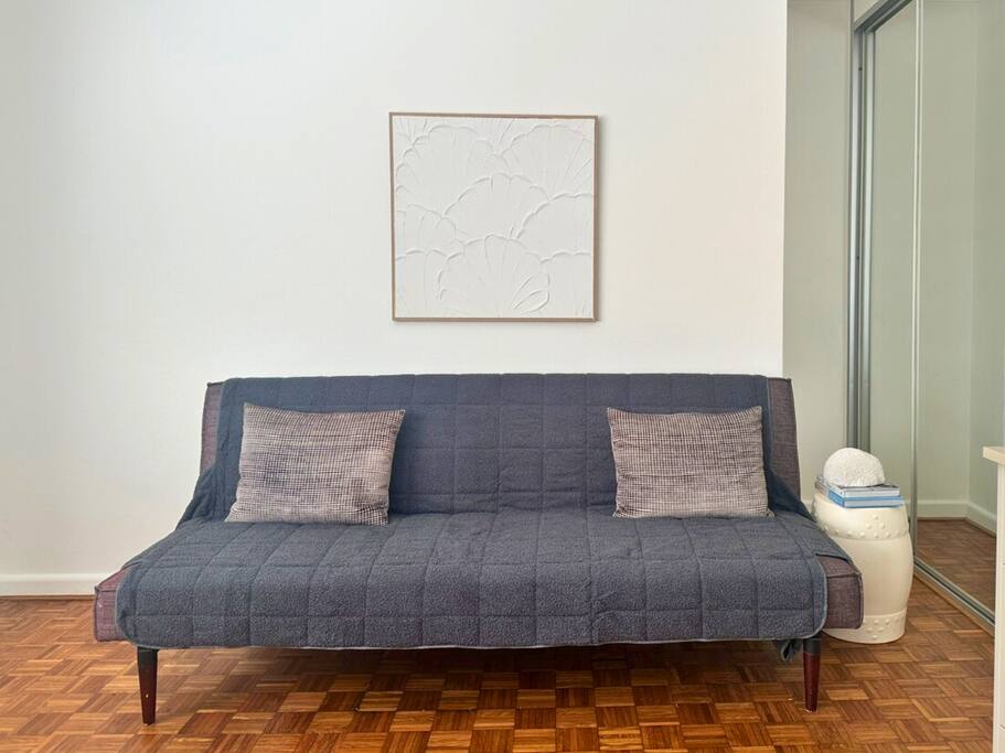 Inside, you’ll find a thoughtfully designed space that maximizes every square metre. Wake up to leafy views from your private balcony, enjoy a fully equipped kitchen for home-cooked meals, and relax in a bright living area with high ceilings and modern finishes. Enjoy fast 5G Wi-Fi, a workspace for your laptop, and a Smart TV for relaxing nights in. The apartment is part of a quiet, exclusive block—so you’ll enjoy peace and privacy, with all the best of Manly just moments away. Wander down to the sand for a morning swim, grab a coffee at one of the local cafés, or explore the vibrant shops and restaurants along The Corso. With easy access to public transport, scenic walks, and water activities, you’ll have everything you need for an unforgettable stay. Whether you’re here to soak up the sun, explore Sydney’s northern beaches, or simply unwind in a beautiful setting, this Little Manly Beachside Hideaway is your perfect home base. · Private Balcony: Leafy outlook, perfect for morning coffee or evening drinks · Modern Kitchen: Gas cooktop, electric oven, dishwasher, full fridge · Laundry: Washer/dryer combo great for refreshing your beach towels · Smart TV: Free to Air or Stream from your favorite apps (bring your own login) · Fast Wi-Fi: 5G broadband