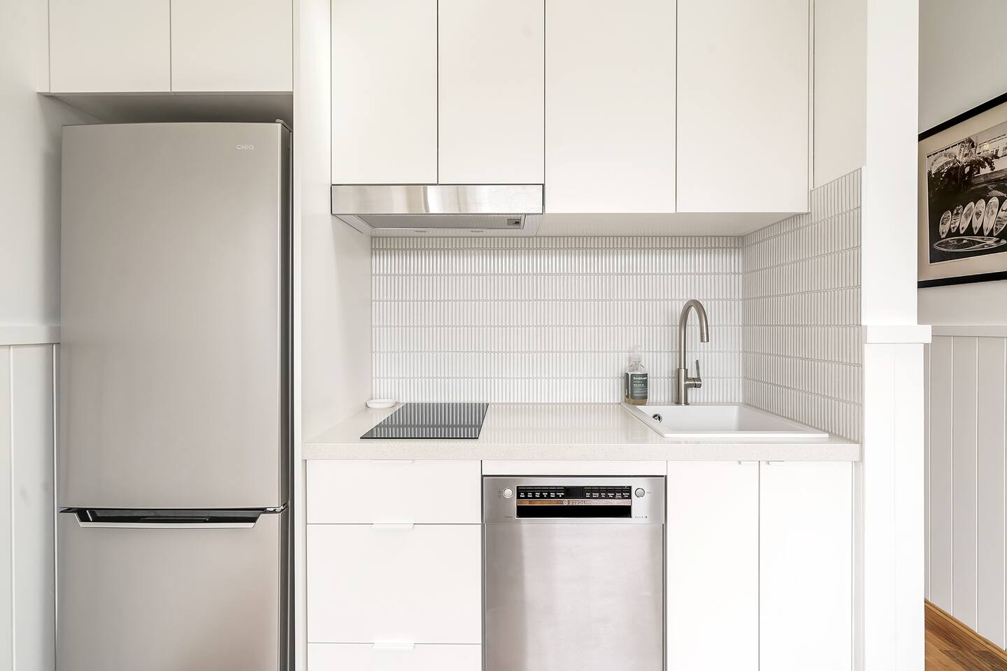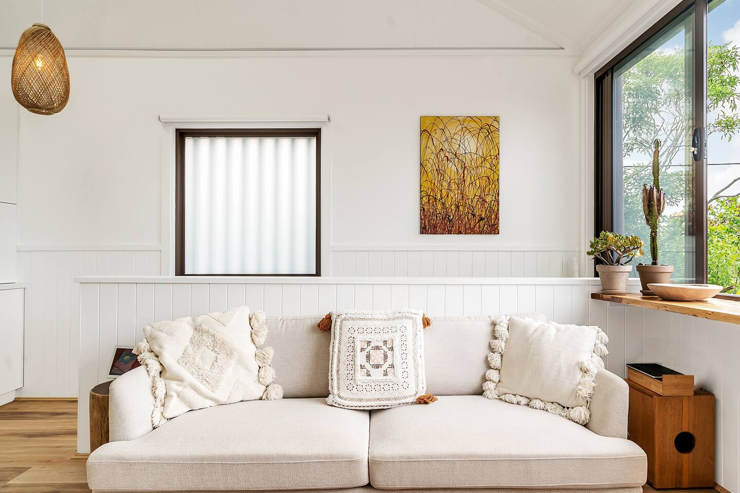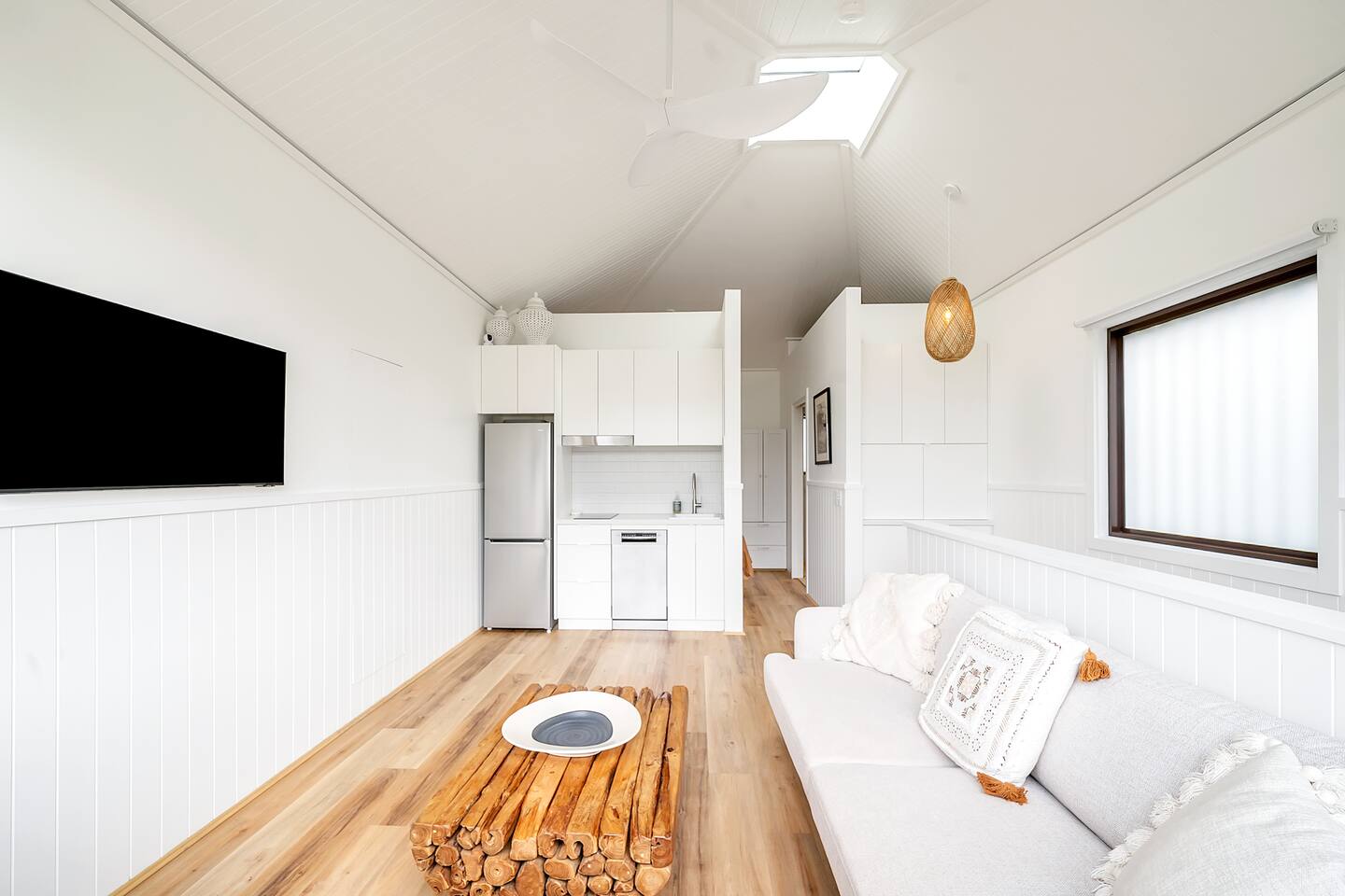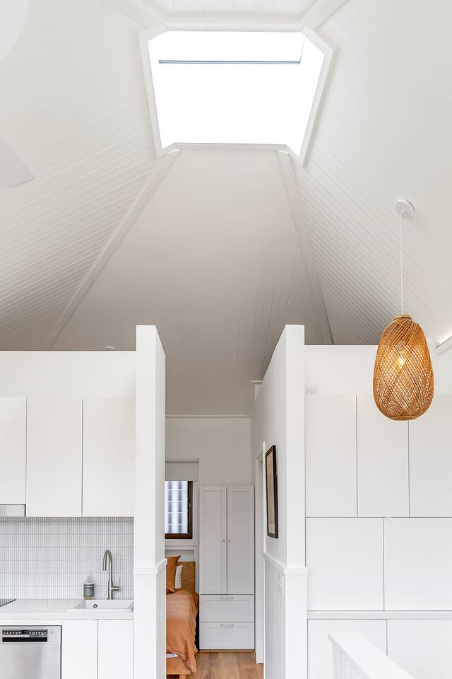 Avec de grandes fenêtres coulissantes donnant sur une rue arborée et paisible, ce superbe appartement d'une chambre dispose de tout ce dont vous avez besoin. Il est spacieux grâce à un magnifique plafond cathédrale et un puits de lumière qui rendent l'espace ouvert et lumineux. Inclus : • 1 chambre avec un lit queen size luxueux • Salle de bain attenante • Cuisine compacte avec réfrigérateur grande taille, lave-vaisselle, plaques de cuisson, micro-ondes, airfryer (mini-four - ils sont fabuleux) • Salon avec canapé confortable, Smart TV, bar pour le petit-déjeuner avec fenêtres donnant sur un jardin sur le toit et vue sur la rue • Buanderie (privée) avec machine à laver - accessible en bas par le garage • Ventilateur de plafond dans le salon (pas de climatisation, mais la brise marine rafraîchit lorsque les fenêtres sont ouvertes) • Beaucoup de places de stationnement dans la rue (permis fourni dans l'appartement) et stationnement illimité à 100 m.