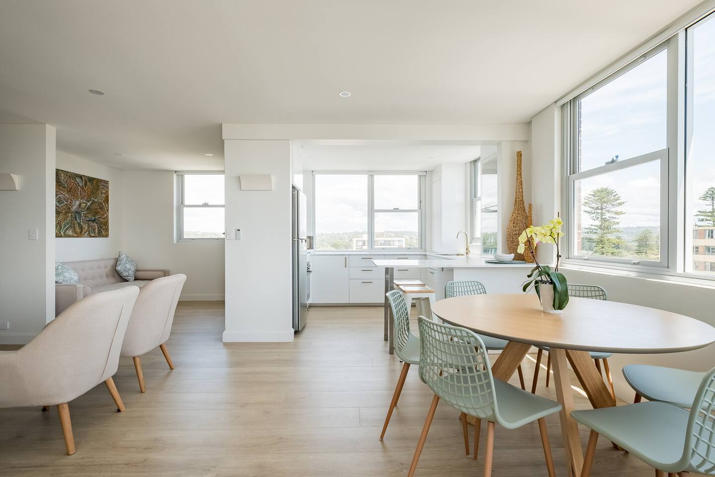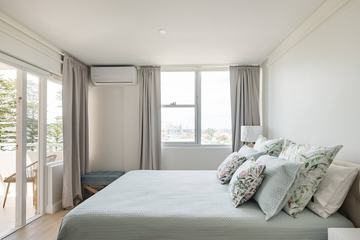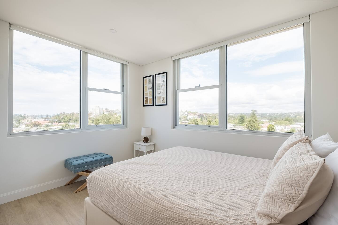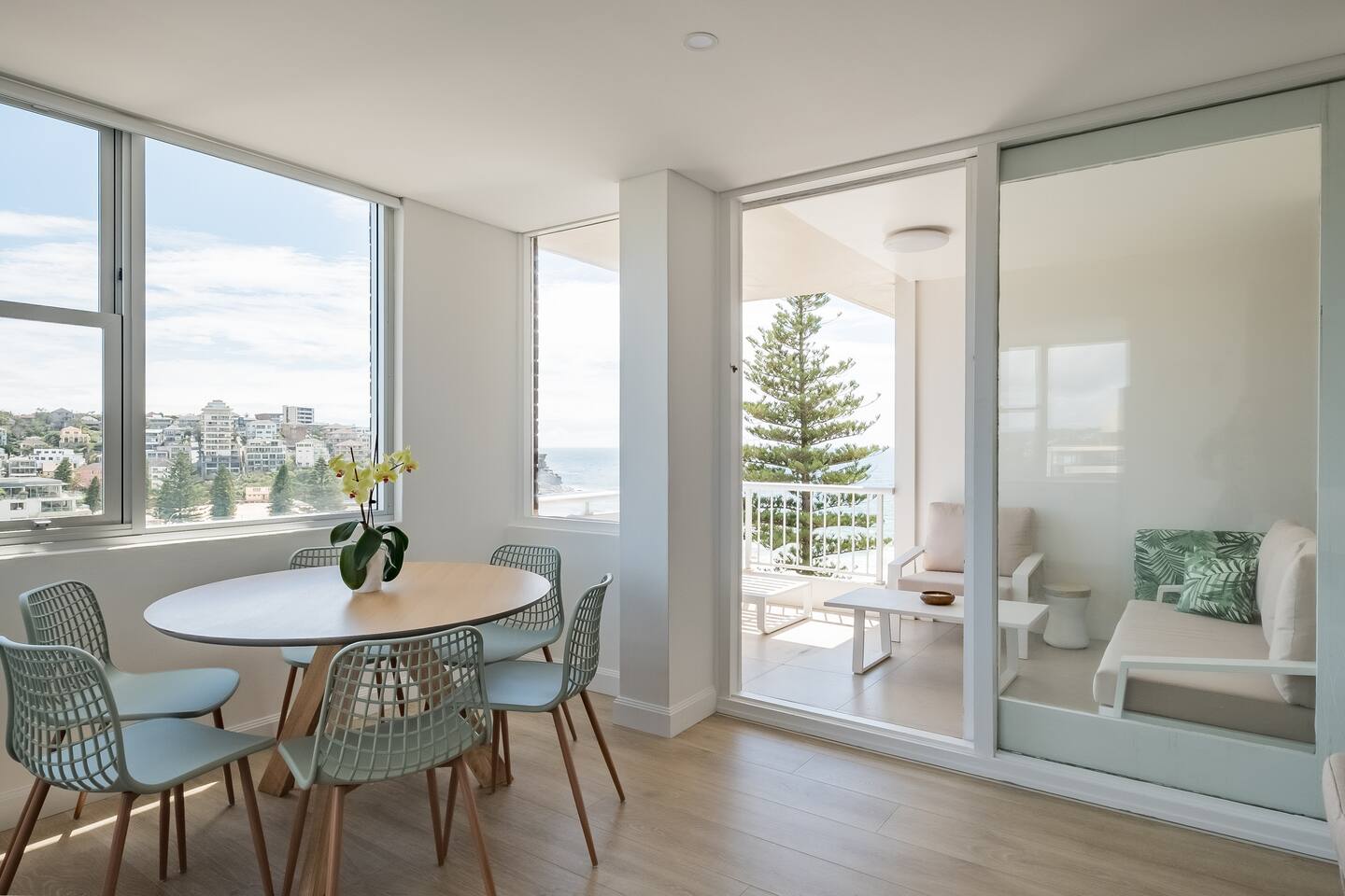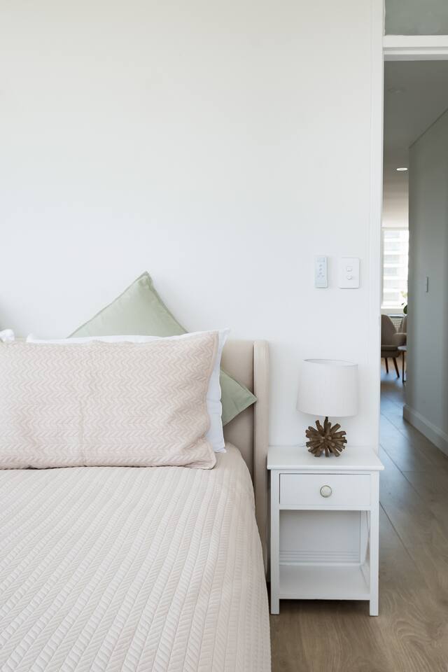 Wake up early to catch the spectacular sunrises from your balcony The property features: - Luxury interiors drenched in sunlight for the entire day with no common walls - Huge master bedroom with built-ins and 2nd balcony overlooking Manly beach - Spacious 2nd bedroom with built-ins and district views - Study off living area ideal for working from home. - Two brand new designer bathrooms with Moroccan tiles - Large living and dining area opening to balcony with ocean views over Manly beach and Queenscliff headland - Brand new kitchen with marble benchtops - Lift to apartment level from ground floor - Airconditioning in living and main bedroom - Electric blinds and LED/mood lighting - With windows on all sides of the apartment, you'll catch a breeze from all angles - Gaze to Shelley Beach and down the pine-lined promenade to Manly Beach and Village - Parking garage for 1 car (Height 1880 - Width 2900 at entrance) - Beach chairs and towels available provided - Portacot and booster seat on request at the time of booking.