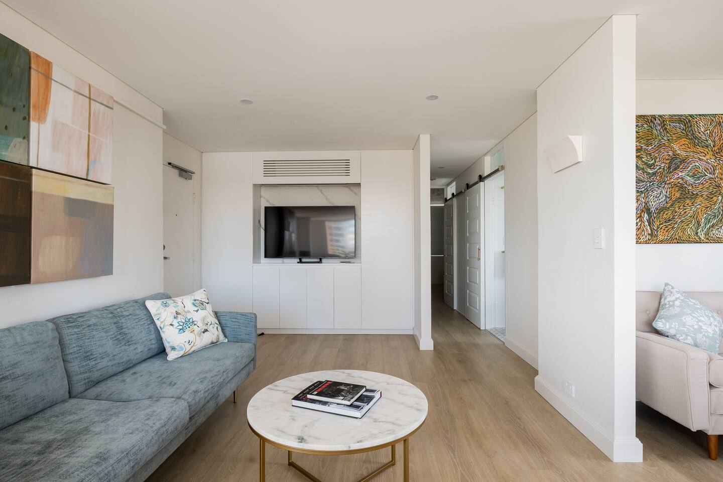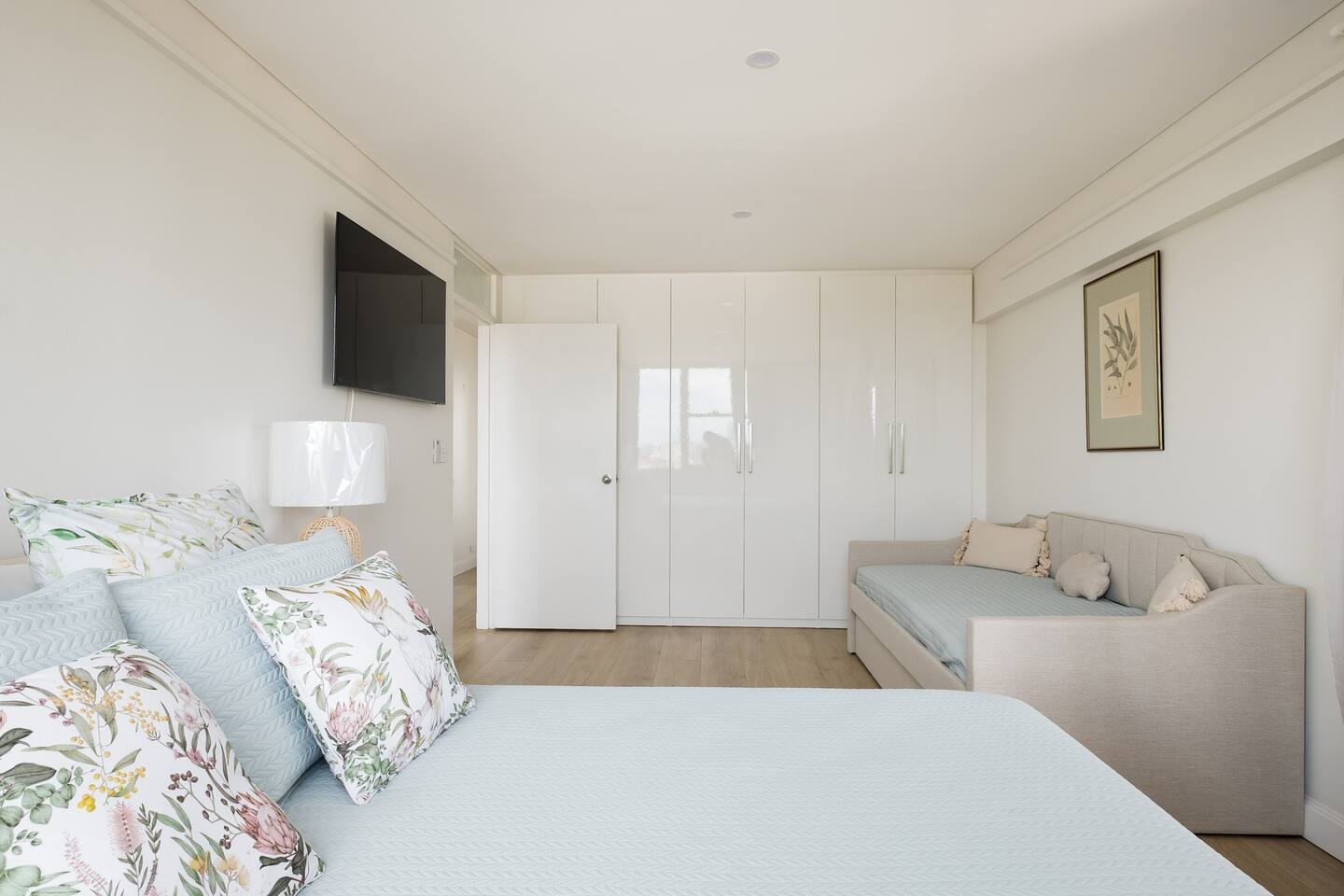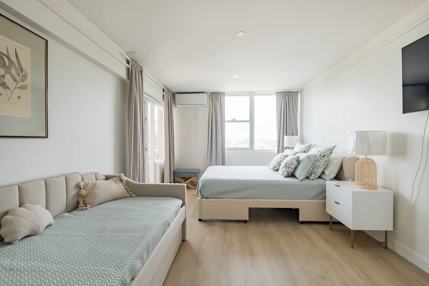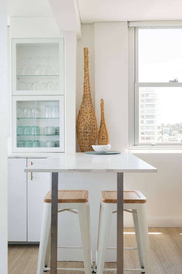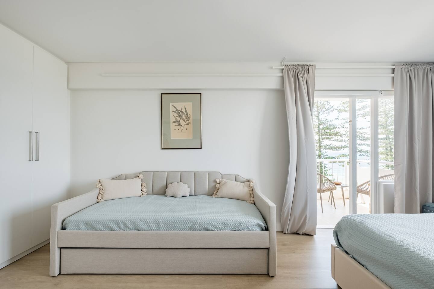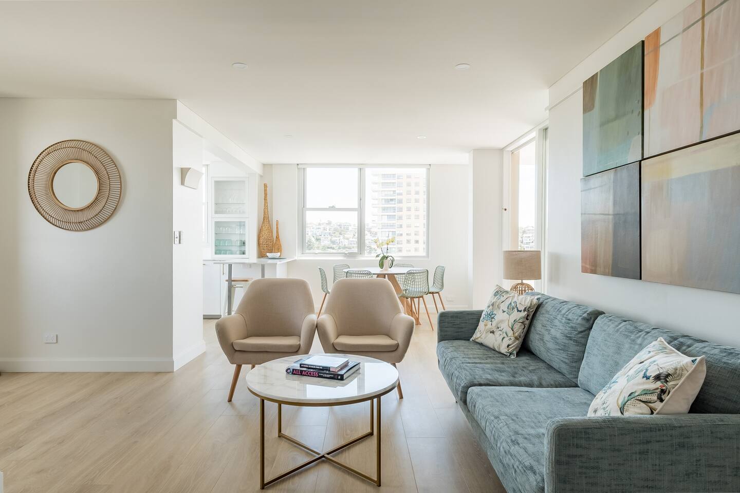 Wake up early to catch the spectacular sunrises from your balcony The property features: - Luxury interiors drenched in sunlight for the entire day with no common walls - Huge master bedroom with built-ins and 2nd balcony overlooking Manly beach - Spacious 2nd bedroom with built-ins and district views - Study off living area ideal for working from home. - Two brand new designer bathrooms with Moroccan tiles - Large living and dining area opening to balcony with ocean views over Manly beach and Queenscliff headland - Brand new kitchen with marble benchtops - Lift to apartment level from ground floor - Airconditioning in living and main bedroom - Electric blinds and LED/mood lighting - With windows on all sides of the apartment, you'll catch a breeze from all angles - Gaze to Shelley Beach and down the pine-lined promenade to Manly Beach and Village - Parking garage for 1 car (Height 1880 - Width 2900 at entrance) - Beach chairs and towels available provided - Portacot and booster seat on request at the time of booking.