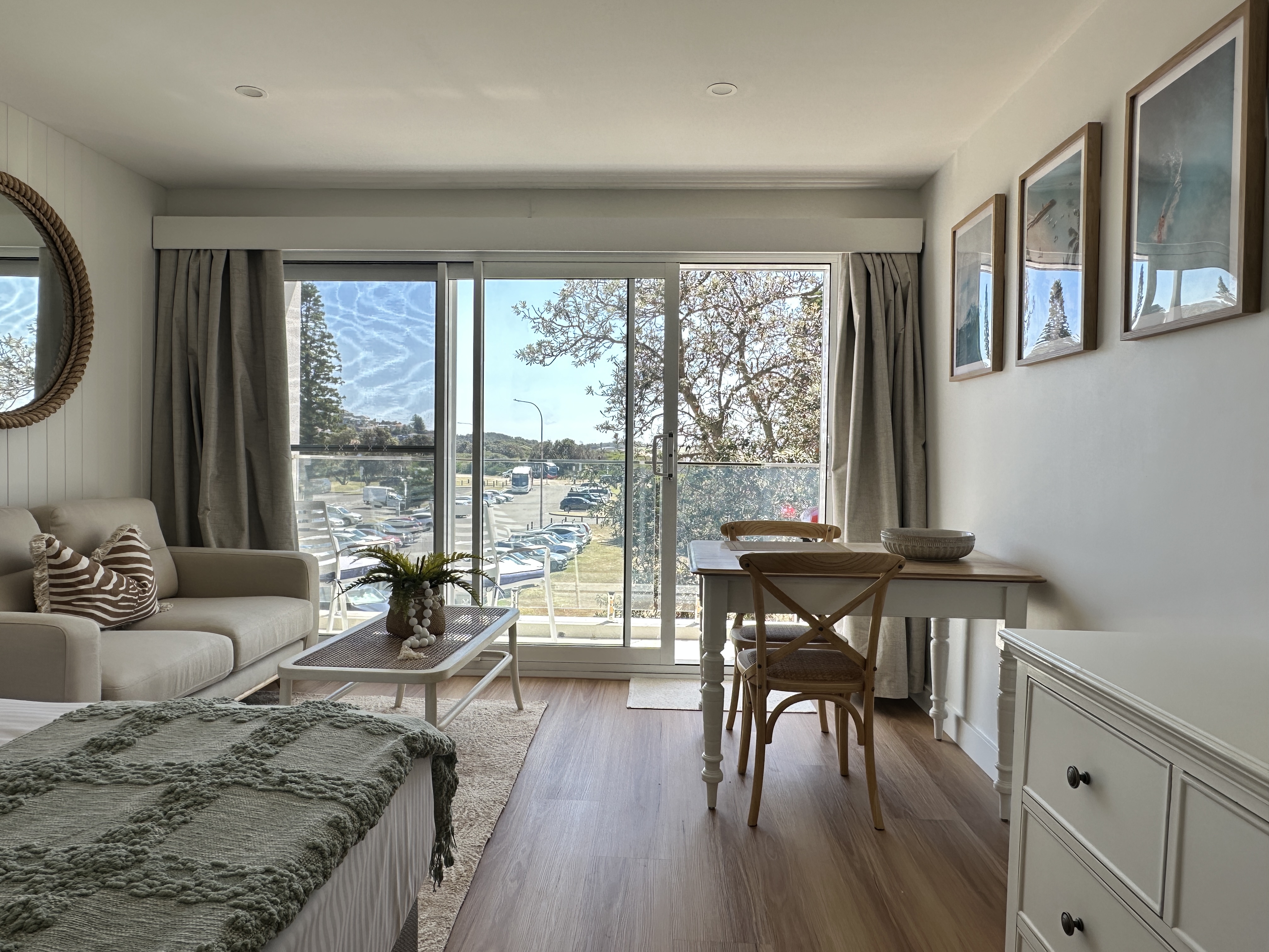 Wake to the sound of waves in this gorgeous studio in the iconic Surfrider Building, right on Dee Why Beach. The apartment has recently been refreshed, befitting the building’s impressive $5 million upgrade. This modern retreat offers everything you'll need. Perfect for guests who love dining out and exploring, you’ll have a world of beachfront restaurants at your doorstep. This is the ultimate base for soaking up the Northern Beaches lifestyle: sun, surf, endless options for food and fun.